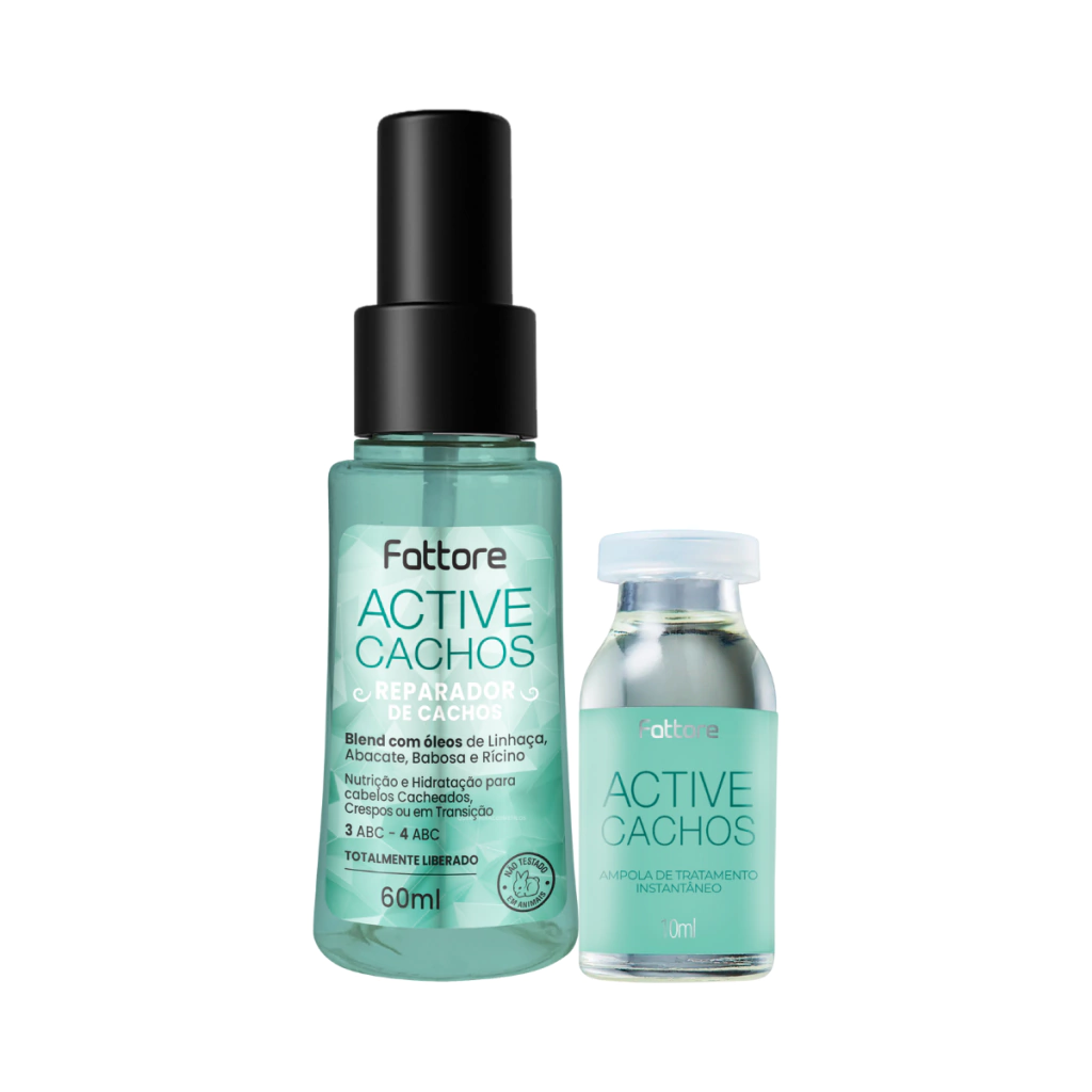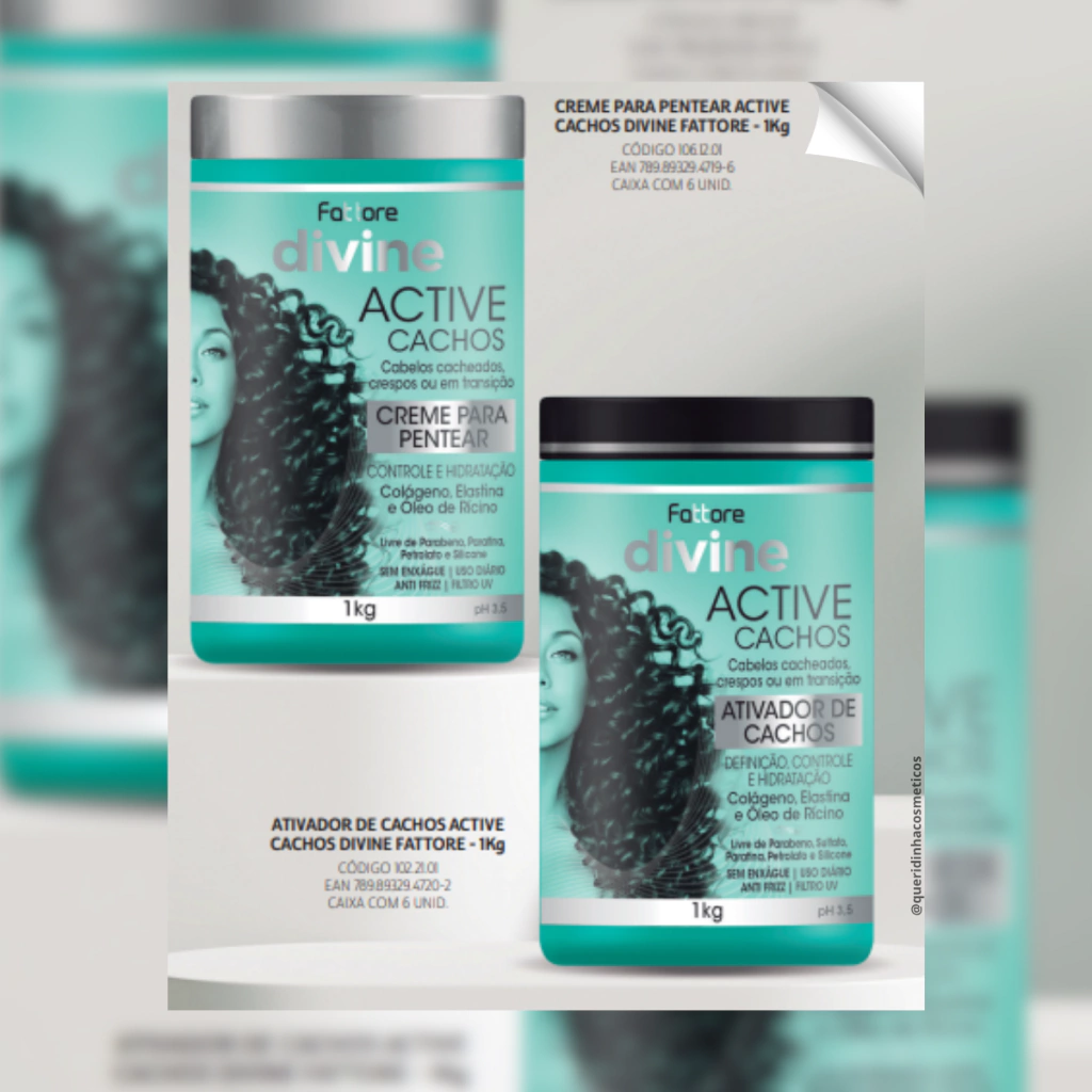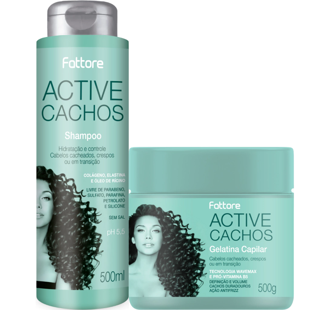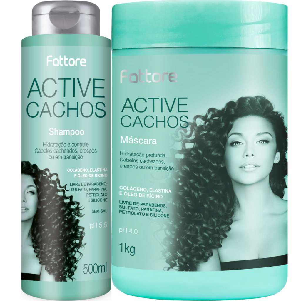 O Kit Active Cachos Fattore foi desenvolvido especialmente para valorizar, modelar e cuidar dos cabelos cacheados, ondulados e crespos. Esse super kit reúne todos os produtos da linha para um tratamento completo — da limpeza à finalização — e ainda acompanha a potente Máscara de Hidratação Active Cachos Fattore 1Kg, ideal para uso profissional e cuidados intensivos.