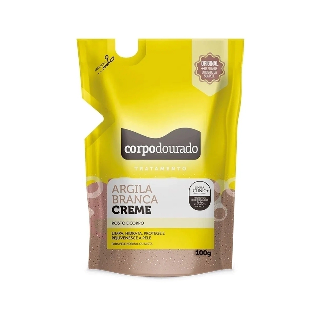 1 Unidade - Argila Branca Creme Corpo Dourado Clinic Mais 100g Rosto e Corpo