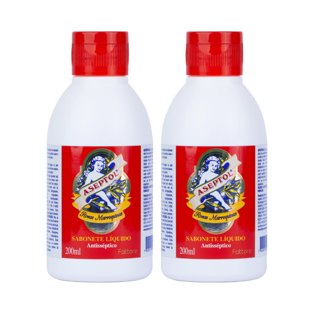 2 uni - Sabonete Líquido Fattore Aseptol 200ml Rosas Marroquinas