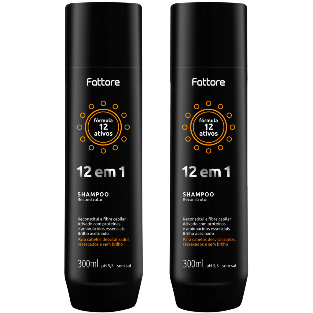 2 uni - Shampoo Fattore Fórmula 12 em 1 300ml Passo 1 Reconstrutor Para Cabelos desvitalizados, ressecados e sem brilho