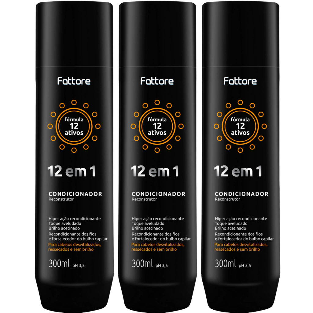 3 uni - Condicionador Fattore Fórmula 12 em 1 300ml Passo 3 Reconstrutor Para Cabelos desvitalizados, ressecados e sem brilho