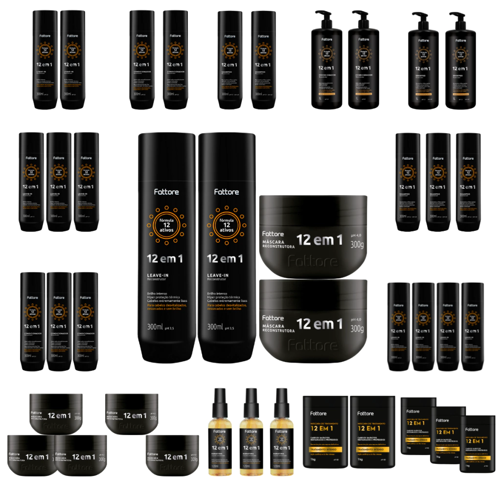 Descubra o poder da Fattore Fórmula 12 em 1, a linha de tratamento capilar desenvolvida para transformar cabelos opacos, danificados e sem vida em fios saudáveis, sedosos e radiantes. Sua fórmula exclusiva reúne 12 benefícios em um só produto, oferecendo um cuidado completo da raiz às pontas.