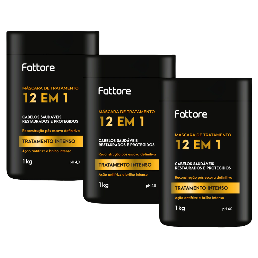 3 uni - Máscara de Tratamento Fattore 12 em 1 1kg Profissional Tratamento Intenso