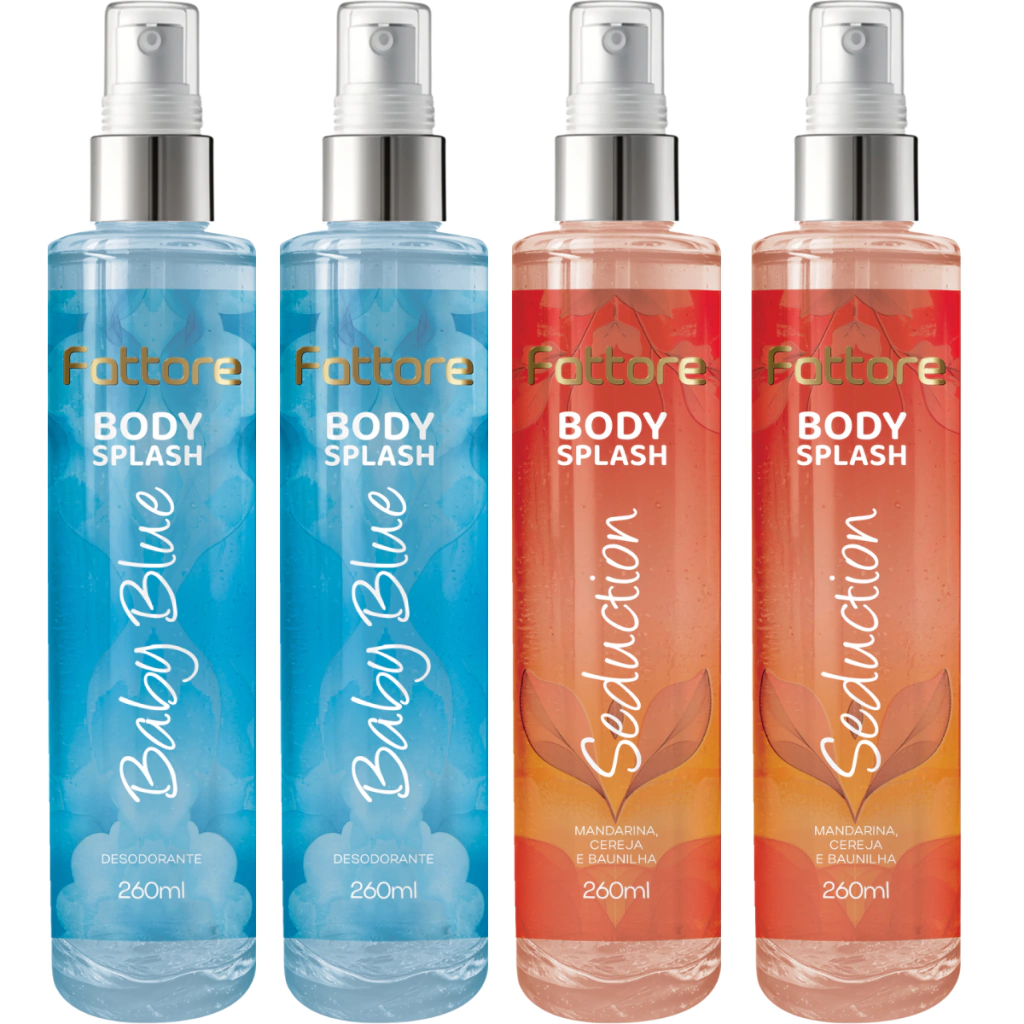 Cada Body Splash Fattore 260ml possui uma fórmula leve que não pesa na pele, proporciona hidratação suave e um perfume refrescante que dura horas. São produtos versáteis, ideais para o uso diário, seja no trabalho, na escola, na academia ou naquele passeio especial.