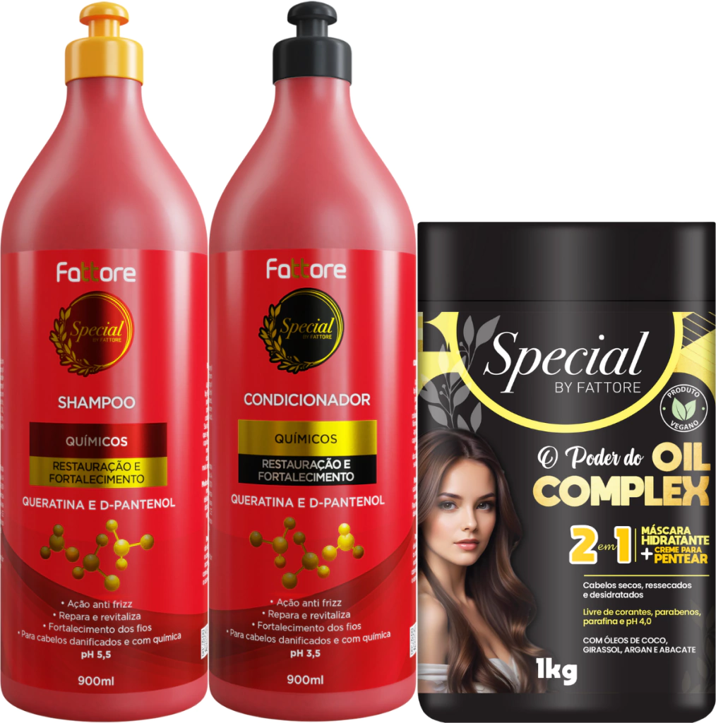 O Kit Fattore Special By Oil Complex, Rosa Mosqueta e Hidratação é a combinação perfeita para quem busca um cuidado capilar completo, nutritivo e profundamente hidratante. Desenvolvido para revitalizar os fios, esse kit une o poder do Oil Complex com a delicadeza e benefícios naturais da Rosa Mosqueta, proporcionando uma experiência única de tratamento e proteção.