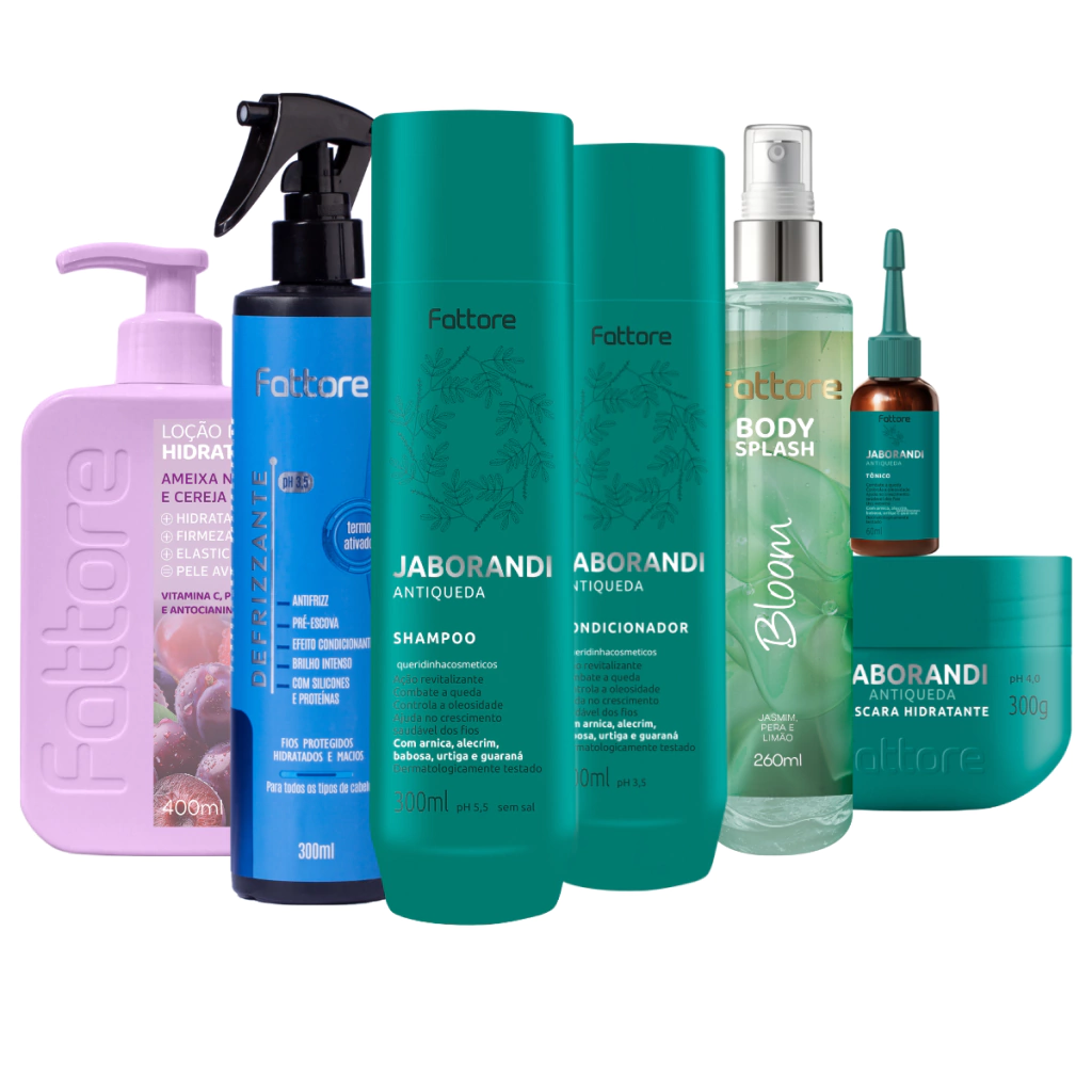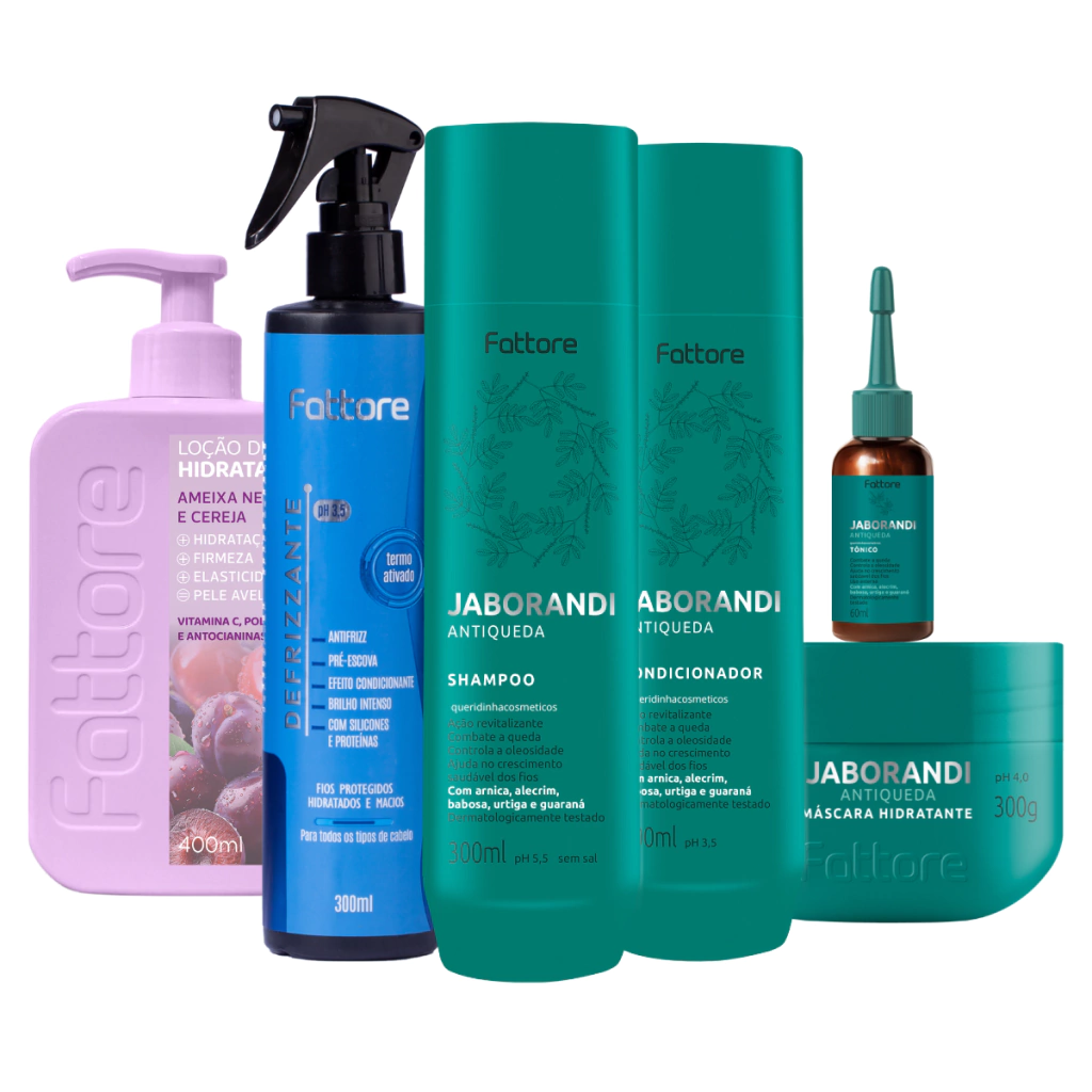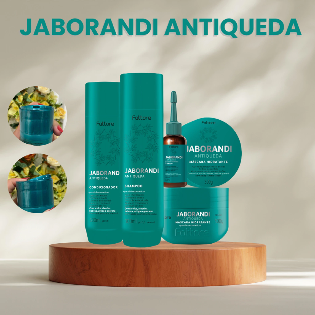 A linha Tratamento Capilar Jaborandi Fattore foi cuidadosamente desenvolvida para combater a queda de cabelo e estimular o crescimento saudável, combinando ingredientes naturais e poderosos ativos que fortalecem os fios desde a raiz. Ideal para quem busca um tratamento completo para cabelos mais fortes, volumosos e com aspecto renovado.