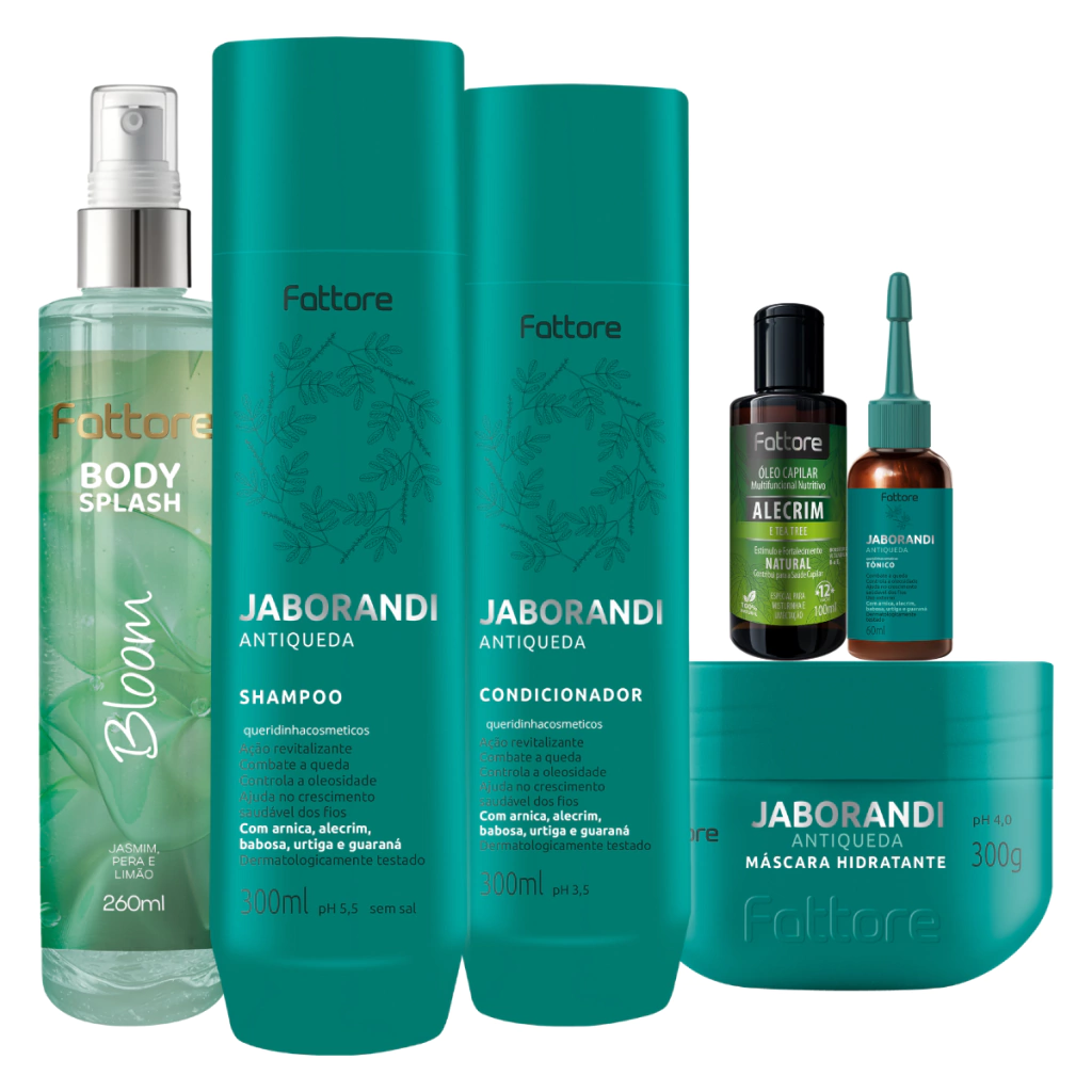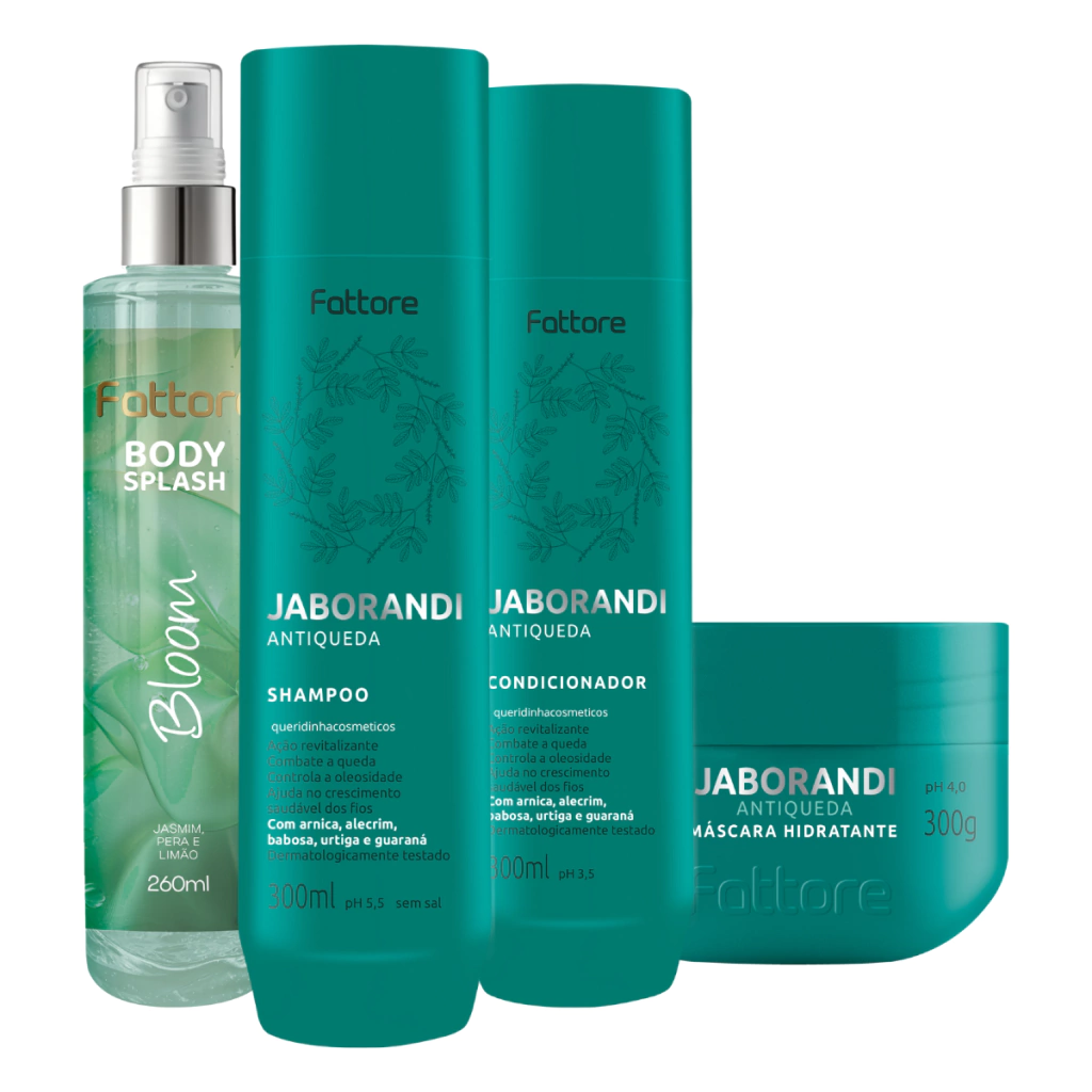 A linha Tratamento Capilar Jaborandi Fattore foi cuidadosamente desenvolvida para combater a queda de cabelo e estimular o crescimento saudável, combinando ingredientes naturais e poderosos ativos que fortalecem os fios desde a raiz. Ideal para quem busca um tratamento completo para cabelos mais fortes, volumosos e com aspecto renovado.