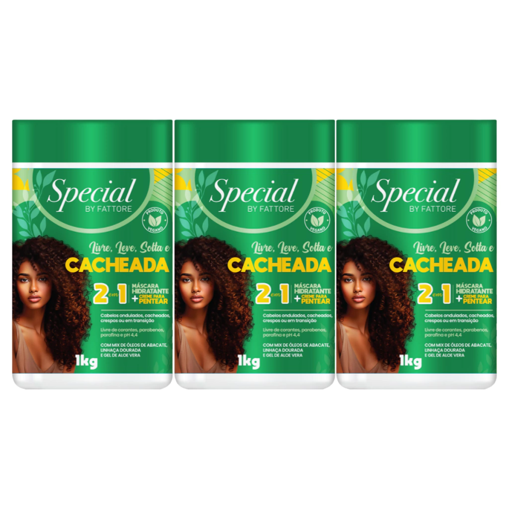 3 uni - Máscara Hidratante e Creme de Pentear Fattore 2 em 1 Special By 1kg Cacheada