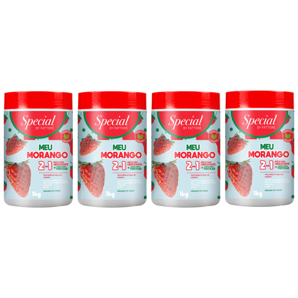 4 uni - Máscara Hidratante e Creme de Pentear Fattore 2 em 1 Special By Frutas 1kg Meu Morango