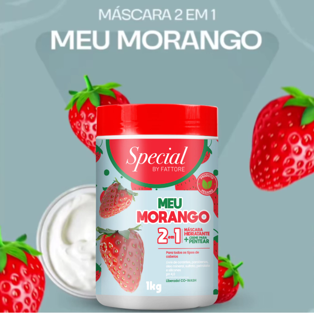 1 uni - Máscara Hidratante e Creme de Pentear Fattore 2 em 1 Special By Frutas 1kg Meu Morango