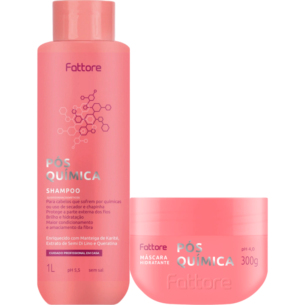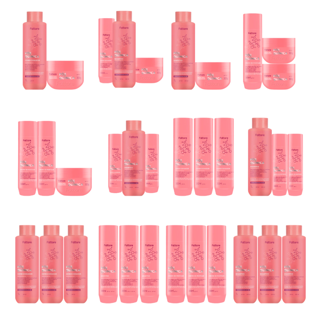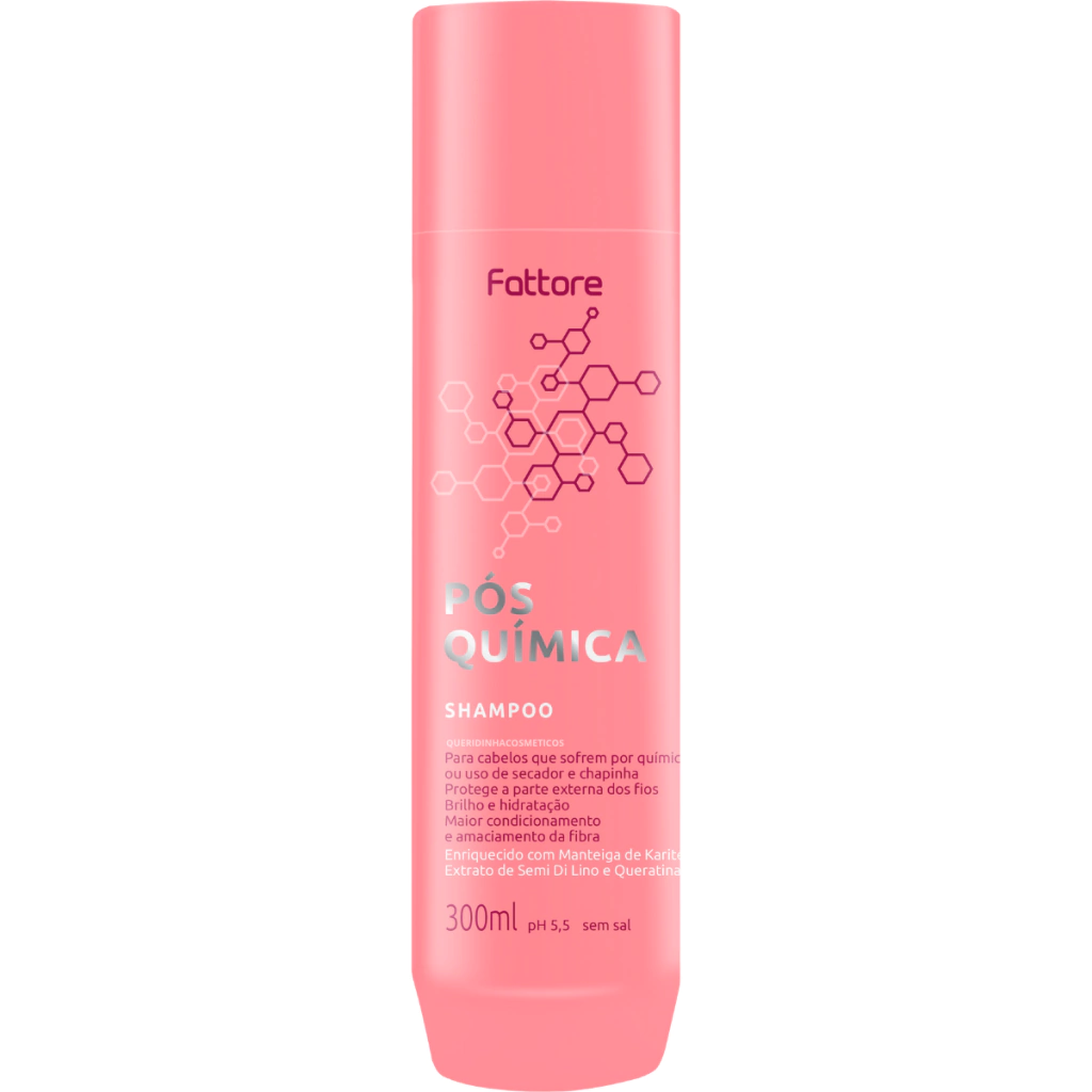 A linha Pós-Química Fattore foi especialmente desenvolvida para oferecer um tratamento completo e eficaz para cabelos danificados por processos químicos. Com fórmulas enriquecidas com Extrato Semi Di Lino e Queratina, esses produtos promovem brilho intenso, hidratação profunda e reconstrução dos fios, restaurando a saúde e a beleza natural dos cabelos.