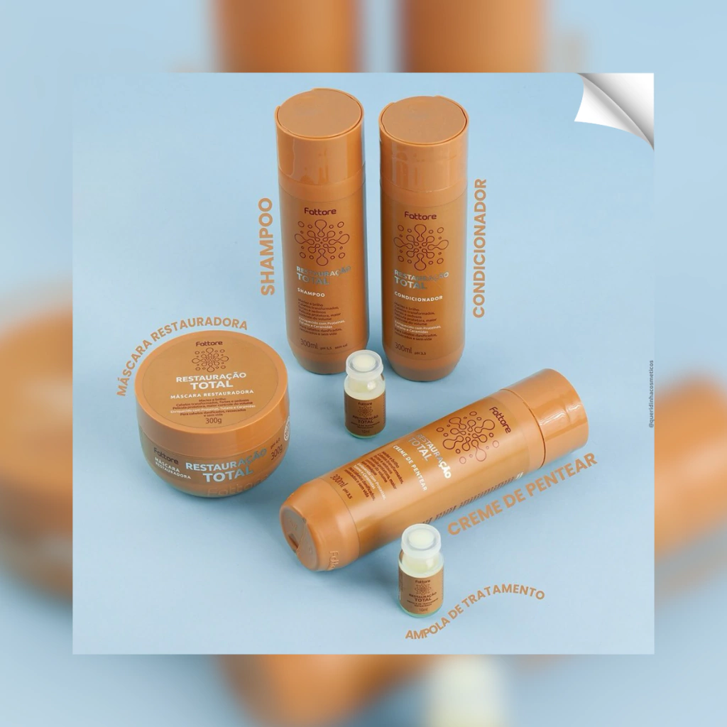 - Condicionador Fattore Restauração Total 300ml com Proteínas, Tutano e Ceramidas