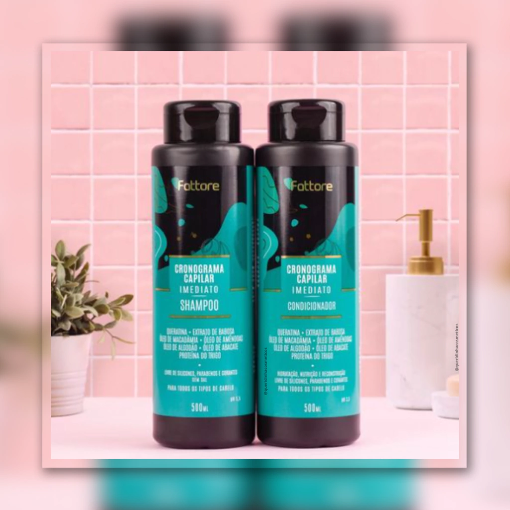 O Kit Shampoo e Condicionador Fattore Cronograma Capilar foi desenvolvido para atender às necessidades de todos os tipos de cabelos. Com uma fórmula balanceada, este kit proporciona hidratação, nutrição e reconstrução, promovendo cabelos saudáveis, macios e revitalizados. Ideal para quem busca um cuidado completo e personalizado para os fios.
