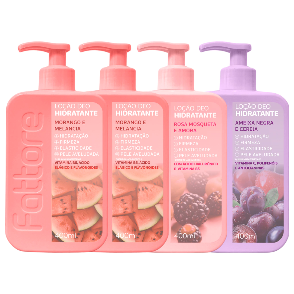 4 uni - Hidratante Corporal Fattore Loção Deo 400ml Morango e Melancia