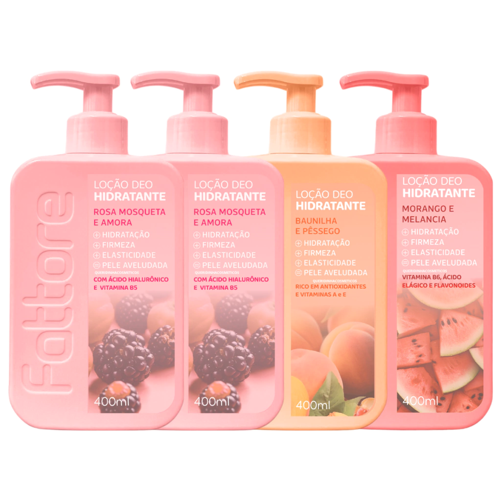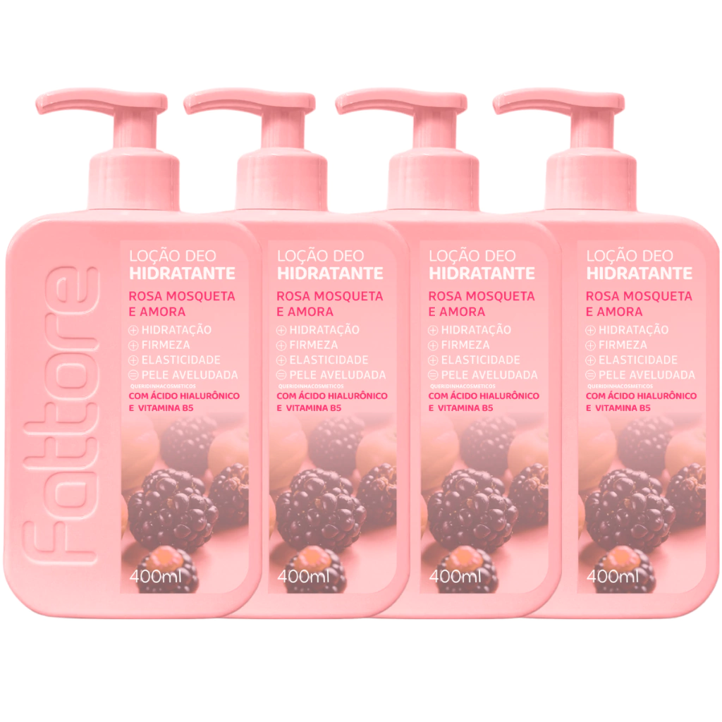 4 uni - Hidratante Corporal Fattore Loção Deo 400ml Rosa Mosqueta e Amora