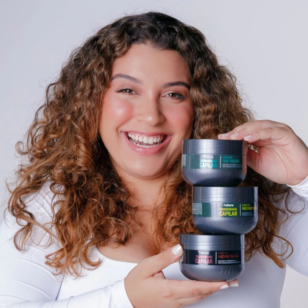 A linha Máscara Capilar Fattore 300g — Tratamento Cronograma Capilar é a solução completa para você que deseja restaurar a saúde, beleza e vitalidade dos seus cabelos com um cuidado profissional e direcionado. Desenvolvidas para atender as três etapas essenciais do cronograma capilar — reconstrução, hidratação e nutrição — essas máscaras proporcionam resultados visíveis e duradouros, respeitando a individualidade dos seus fios.