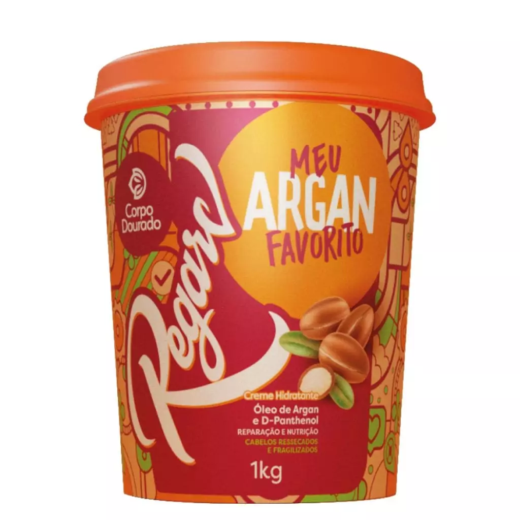 1 unidade - Máscara de Hidratação e Creme de Pentear Corpo Dourado Regarv 2 em 1 1kg Meu Argan Favorito para Cabelos Ressecados