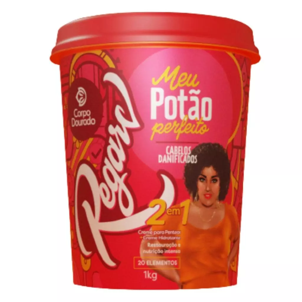 1 unidade - Máscara de Hidratação e Creme de Pentear Corpo Dourado Regarv 2 em 1 1kg Meu Potão Perfeito para Cabelos Danificados
