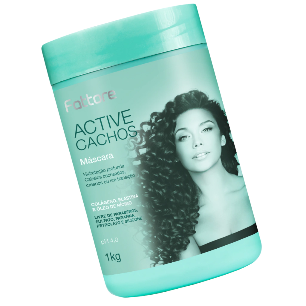 1uni - Máscara de Tratamento Fattore Active Cachos 1kg Hidratação e Controle