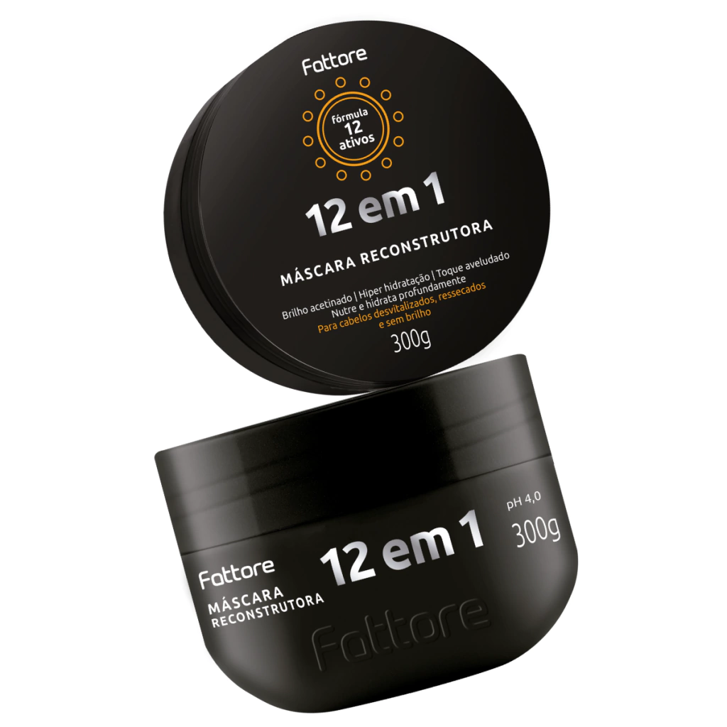 1uni - Máscara Fattore Fórmula 12 em 1 300ml Passo 2 Reconstrutor Para Cabelos desvitalizados, ressecados e sem brilho