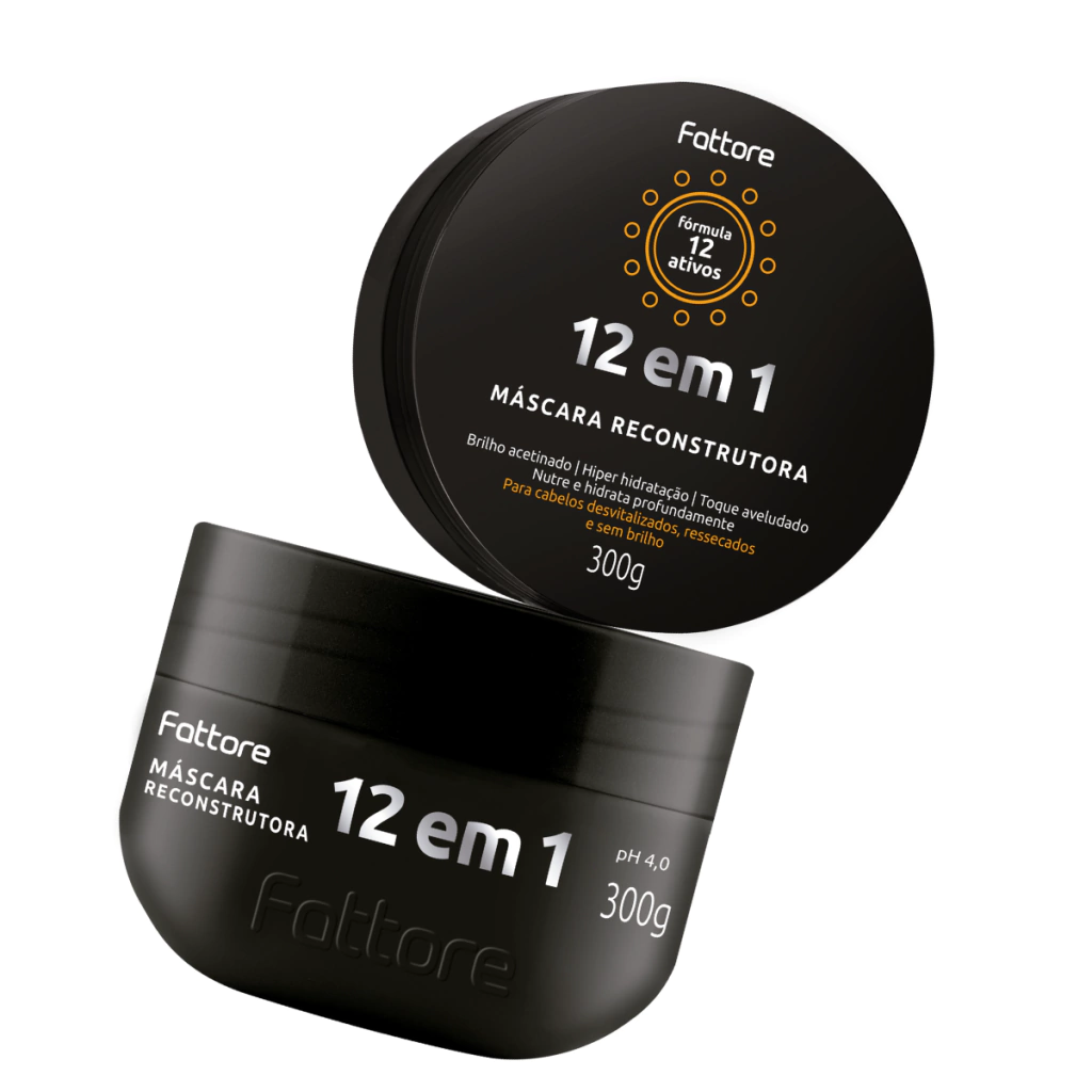 A Máscara Reconstrutora Fattore 12 em 1 provê uma intensa hidratação à fibra capilar, fortalecendo os fios e doando brilho. Seus 12 ativos reestabelecem a saúde do cabelo atuando desde a raíz até as pontas. eliminando as pontas duplas e quebradiças, intensificando a absorção de nutrientes vitais para o cabelo.