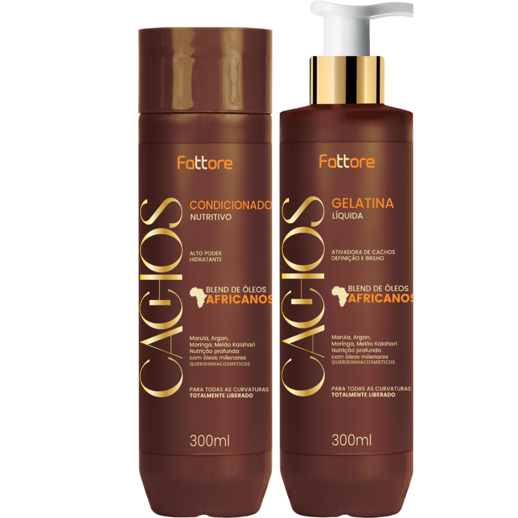 2 uni - Gelatina Líquida Fattore Óleos Africanos 300ml Ativadora de Cachos p/ Totas as Curvaturas