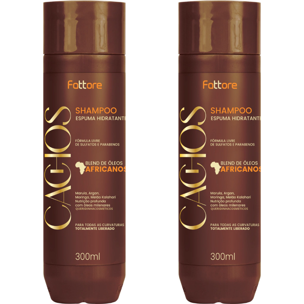2 uni - Shampoo Fattore Óleos Africanos 300ml p/ Todas as Curvaturas Livre de Sulfatos e Parabenos