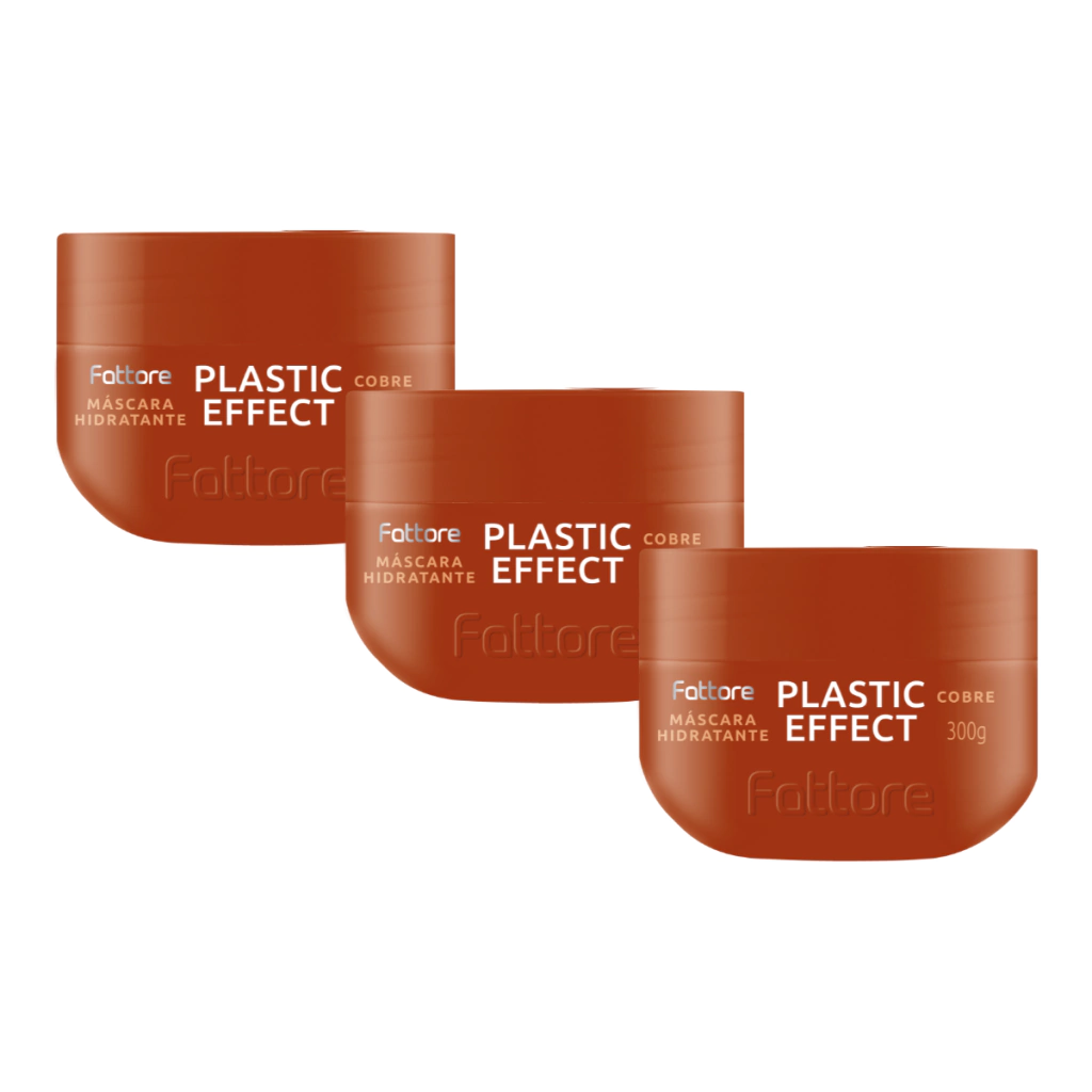 3 uni - Máscara Hidratante Fattore Divine Plastic Effect 300g Cobre c/ Cacau e Avelã