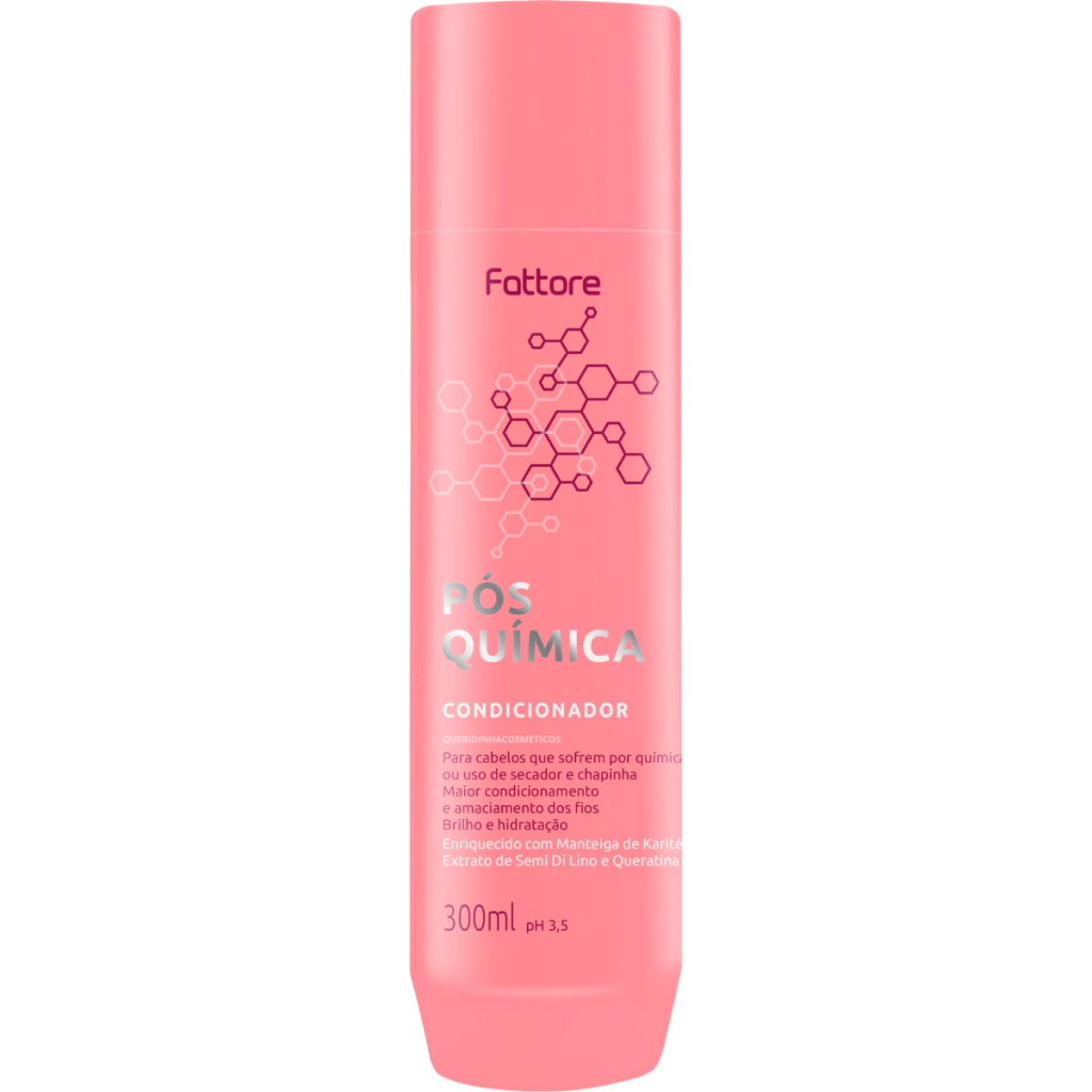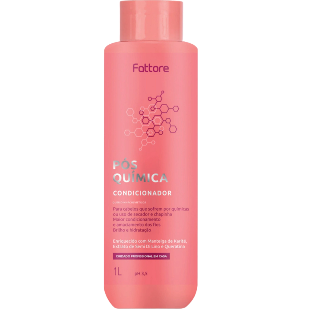 A linha Pós-Química Fattore foi especialmente desenvolvida para oferecer um tratamento completo e eficaz para cabelos danificados por processos químicos. Com fórmulas enriquecidas com Extrato Semi Di Lino e Queratina, esses produtos promovem brilho intenso, hidratação profunda e reconstrução dos fios, restaurando a saúde e a beleza natural dos cabelos.