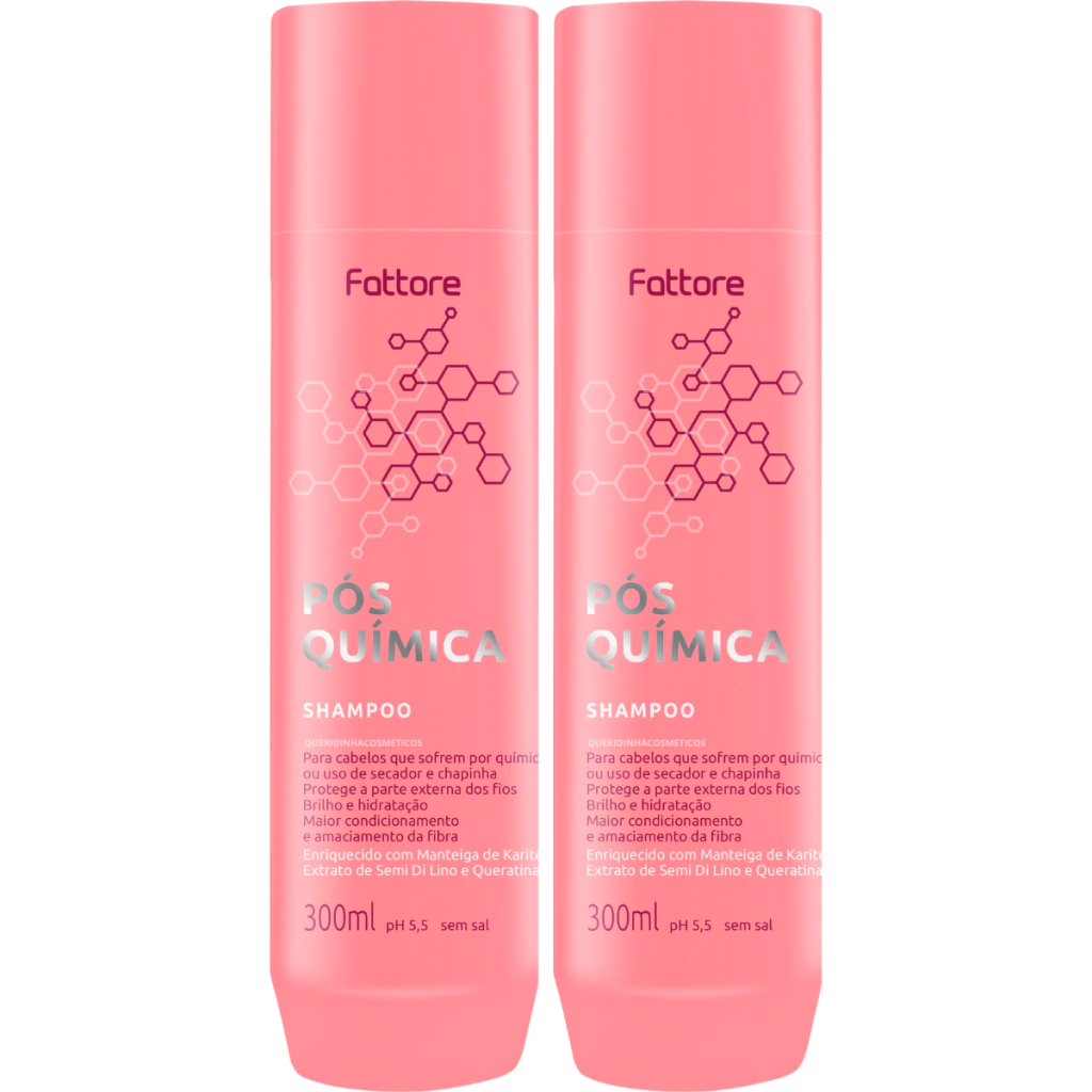 2 uni - Shampoo Fattore Pós-Química 300ml Brilho e Hidratação com Extrato Semi Di Lino e Queratina
