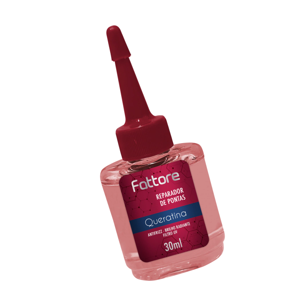 O Reparador de Pontas Fattore com Filtro UV, em embalagem de 30ml, combina queratina para fortalecer e proteger os cabelos, proporcionando um brilho radiante e controlando o frizz. Ideal para proteger as pontas dos cabelos contra danos causados pelo sol, deixando-os mais macios, brilhantes e com uma aparência saudável. Perfeito para finalizar o penteado e manter os cabelos com um aspecto impecável ao longo do dia.