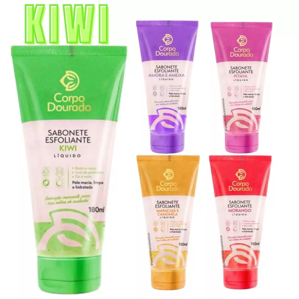 1 unidade - Sabonete Esfoliante Corpo Dourado Clinic+ Facial e Corporal 180ml Kiwi Livre de Parabenos Pele Macia, Limpa e Hidratada
