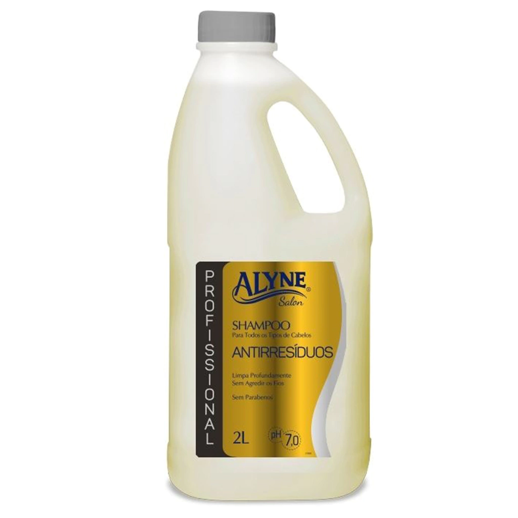 A linha profissional de Shampoo Alyne Antirresíduos foi desenvolvida para limpar profundamente os fios ajudando a reestruturar as cutículas danificadas, devido ao acúmulo de resíduos pesados. Também auxilia na preparação dos cabelos para os processos químicos e para uma hidratação profunda. Possui ação adstringente.