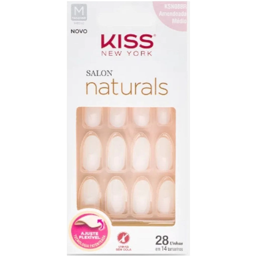 1 Unidade - Unhas Postiças First Kiss NY Salon Naturals Amendoada Médio 28 unid KSN08BR